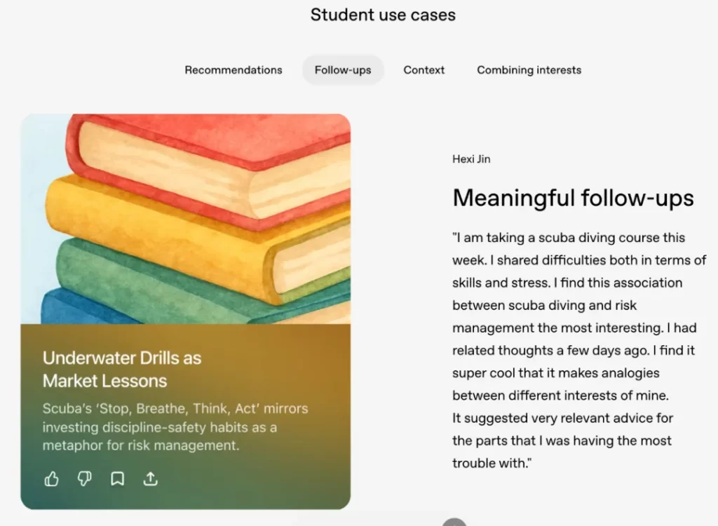 目前 Pulse 还是早期版,已经有大学生实测真香:刚开始觉得一般,跟它说清楚自己想要啥后,直接被「举一反三」的能力惊到!比如有个潜水党说练潜水遇到困难,Pulse 不仅给建议,还把潜水和风险管理做类比,精准戳中兴趣点~