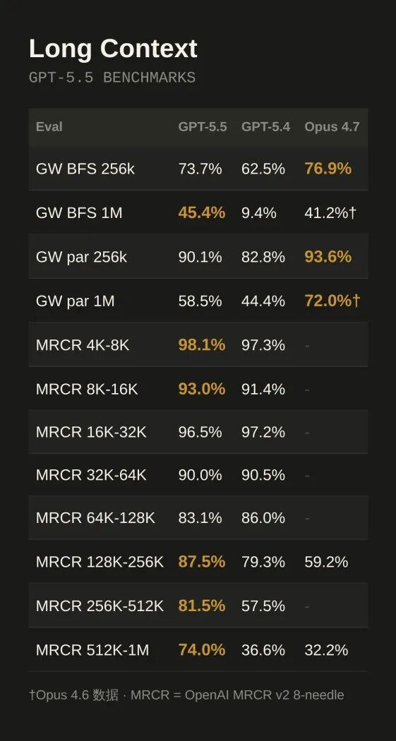 长上下文 256K 以上,Claude Opus 4.7 在部分指标上仍有优势