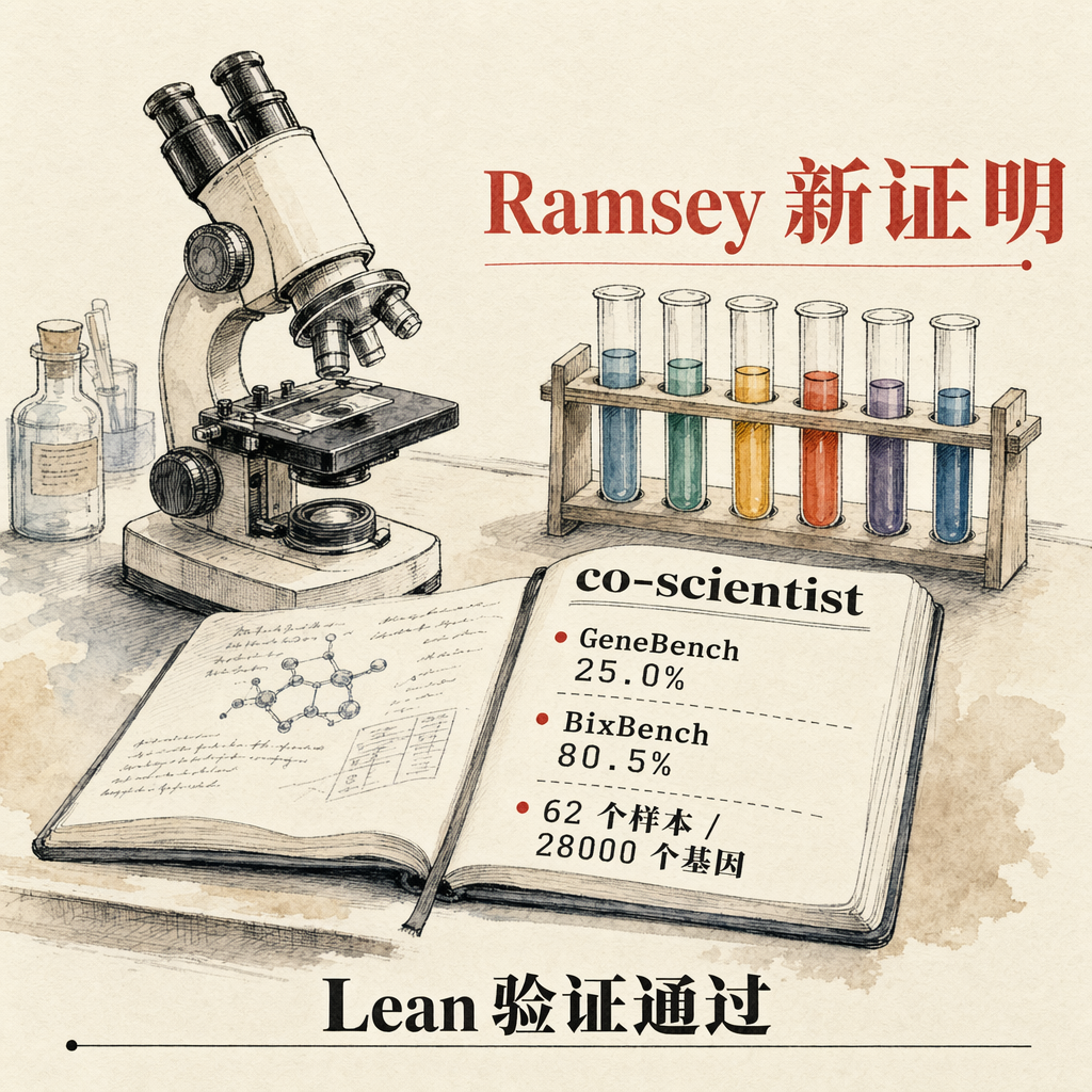 GPT-5.5 的内部版本配合自定义工具链,发现了关于 Ramsey 数的一个新证明。Ramsey 数是组合数学的核心对象,研究结果稀少且技术难度高。这个证明后来在 Lean 中完成了形式化验证