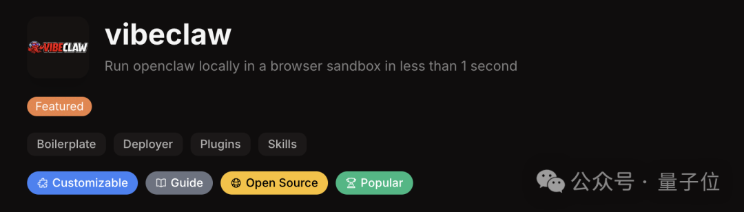 排在第四位的vibeclaw就更极限了,号称可以1秒内在浏览器沙箱中本地运行OpenClaw