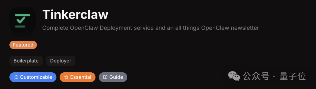 第五位Tinkerclaw,被分类到了Boilerplate、Deployer一栏。
