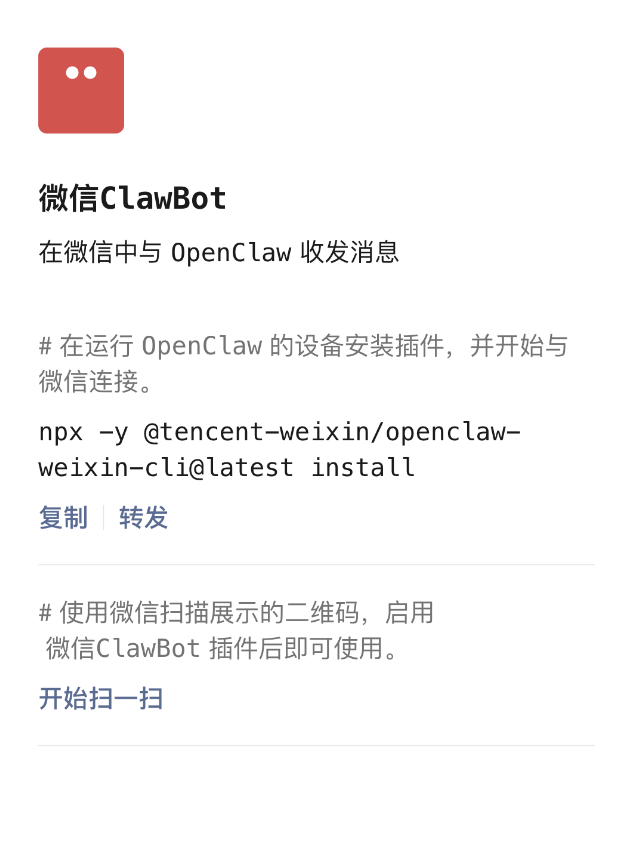 敲:npx -y @tencent-weixin/openclaw-weixin-cli@latest install
