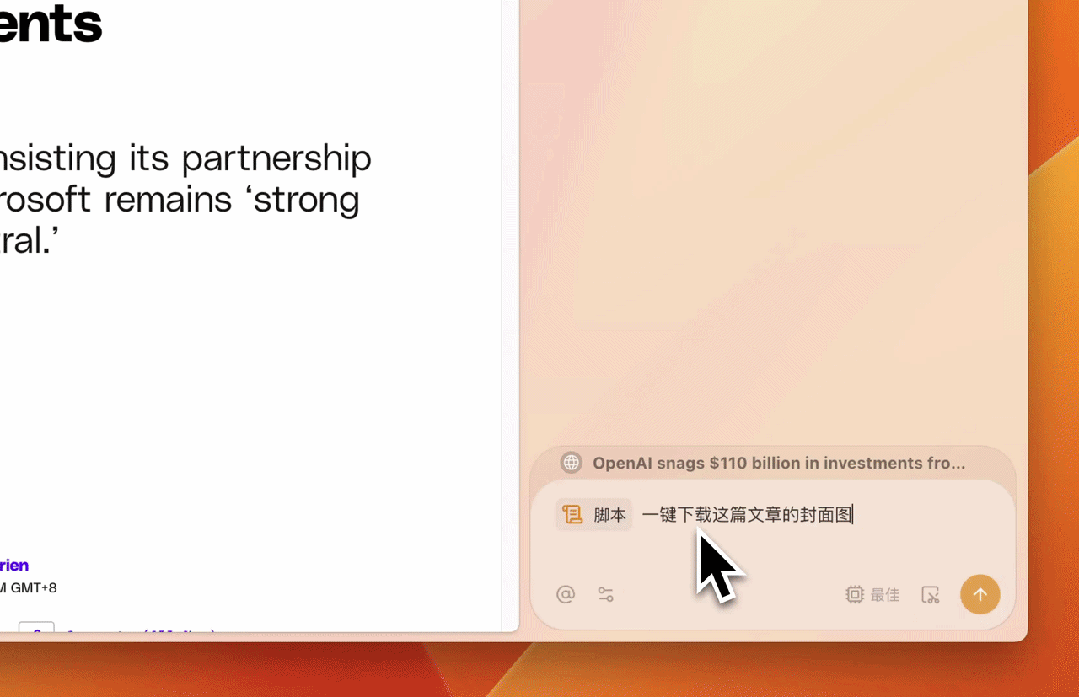 大多数人使用 AI 的方式都很割裂,在浏览器里读到一篇文章,想让 AI 总结或追问,只能手动复制粘贴,切换到另一个 AI 应用。这种操作每天发生很多次,每一次都打断当前的阅读思路。
